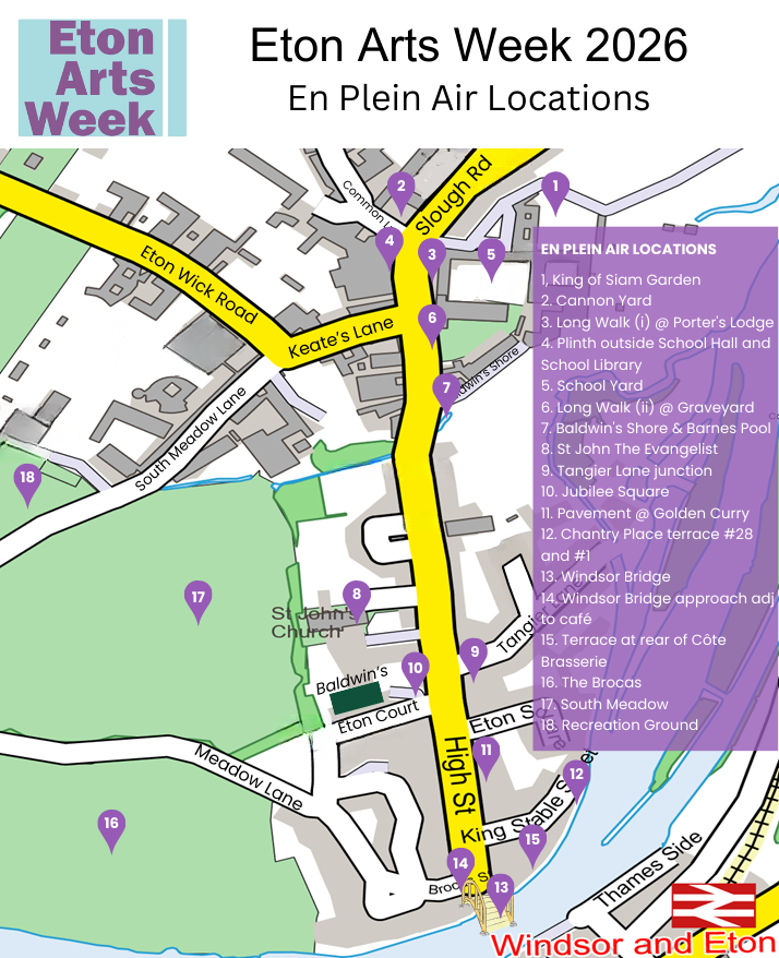 The application form includes the opportunity to apply for three locations, in order of preference. Full information on the locations for Eton En Plein Air is available in the Eton En Plein Air 2026 Artist Information Pack which you’ll get to by clicking the orange button below.